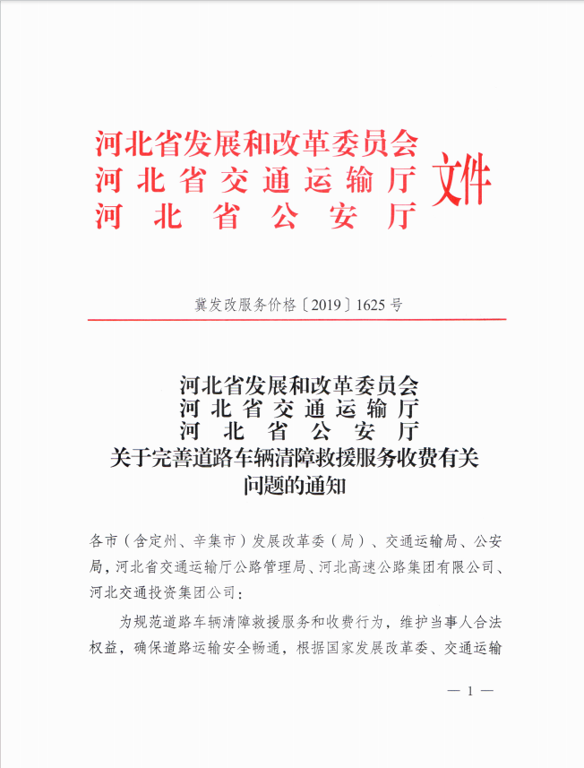 河北省发展和改革委员会 河北省交通运输厅 河北省公安厅 《关于完善道路车辆救援服务收费有关问题的通知》》