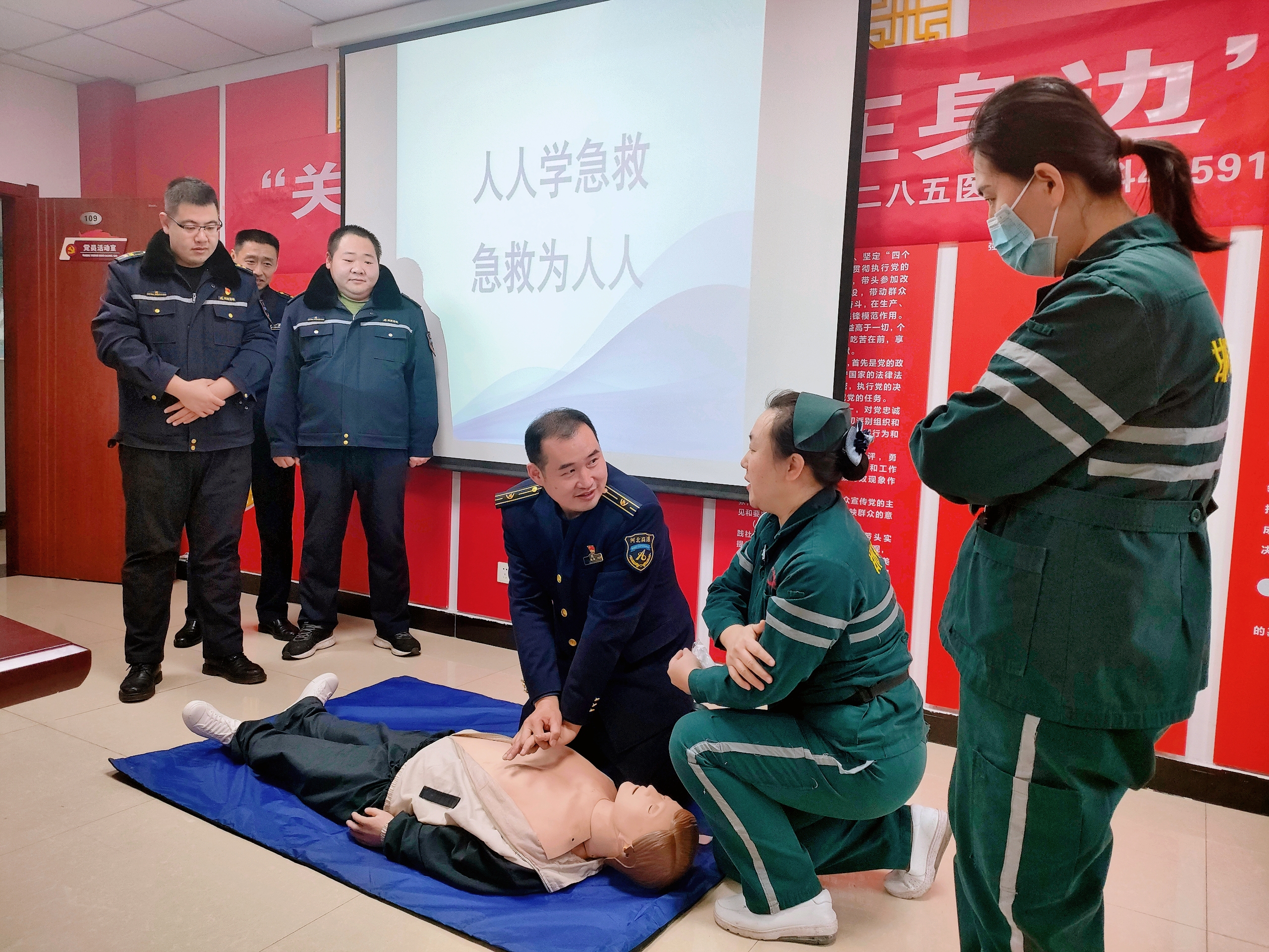 为提高干部职工安全意识,提升应对突发事件和意外伤害事故的应急救援和自救互救能力,1月16日,石安分公司邯郸南收费站以“关爱生命 救在身边”为主题开展急救知识培训。