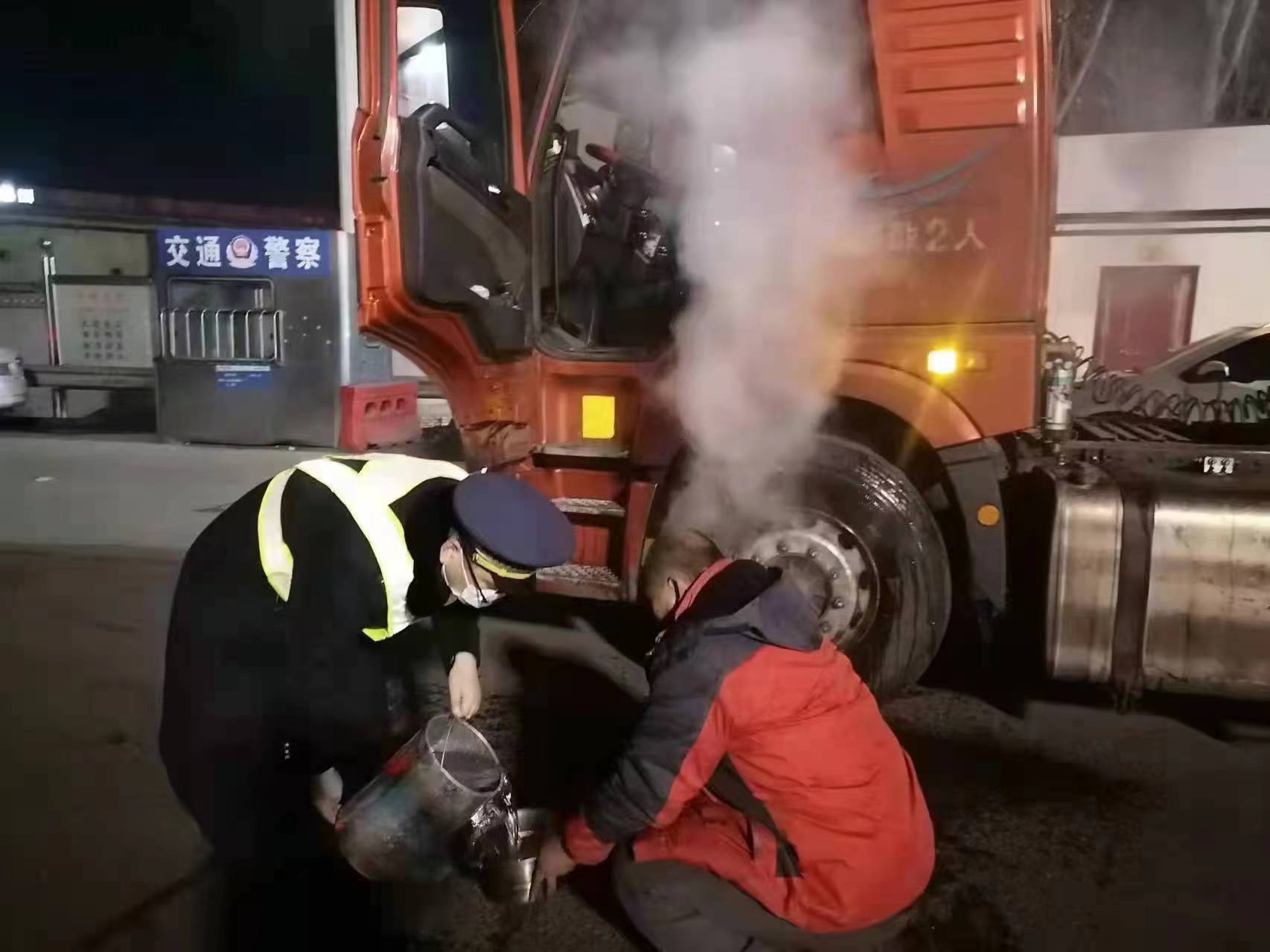 “班长,快看,有辆车好像有情况,车轮在冒烟!”沿着疏导员指的方向,班长闫志科看见一辆冒着烟的六轴货车向103车道极速驶来。事情发生在2月15日晚上11点20分左右,凭借班长的经验,闫志科立即用对讲通知岗亭收费员韩凯,让韩凯拦停车辆并告知司机这一状况,同时闫志科带领疏导人员火速赶到将车辆疏导至广场安全地带,并在车身周围放置安全锥,待司机熄火下车后,闫志科马上对冒烟部位进行检查,原来是左前轮胎的刹车片过热引起的,了解原因后,闫志科连续提了几桶水来为车辆降温并把水箱加满。事后司机向闫志科表达了感谢,闫志科说:“守护司乘的安全是我们的职责所在!新春佳节之际,您在路上行驶还是要安全第一!”司机再一次道谢后驶离收费站。