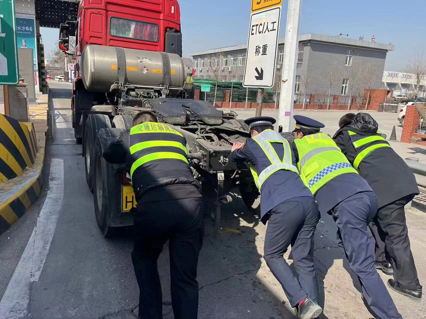 3月9日上午11:00左右,一辆货车突然停在窦妪收费站收费车道入口处,迟迟不见其向前行驶。当班收费员立即上报班长,班长赶到现场看见司机在车辆的后方维修,得知原来车辆突发故障,挂不上挡,车辆无法正常行驶。司机简单维修后并多次尝试挂档,车辆仍无法正常行驶。班长为保障司机安全和车辆通行前提下,通知了疏导员过来帮助司机将车推至收费外广场安全区域,由于车身太重,便呼叫正在巡逻高速路政人员一起推车。在大家的同心协力下车辆被推到外广场安全位置。又帮助司机联系了附近的修车店。小小的举动获得了司机的连连道谢。