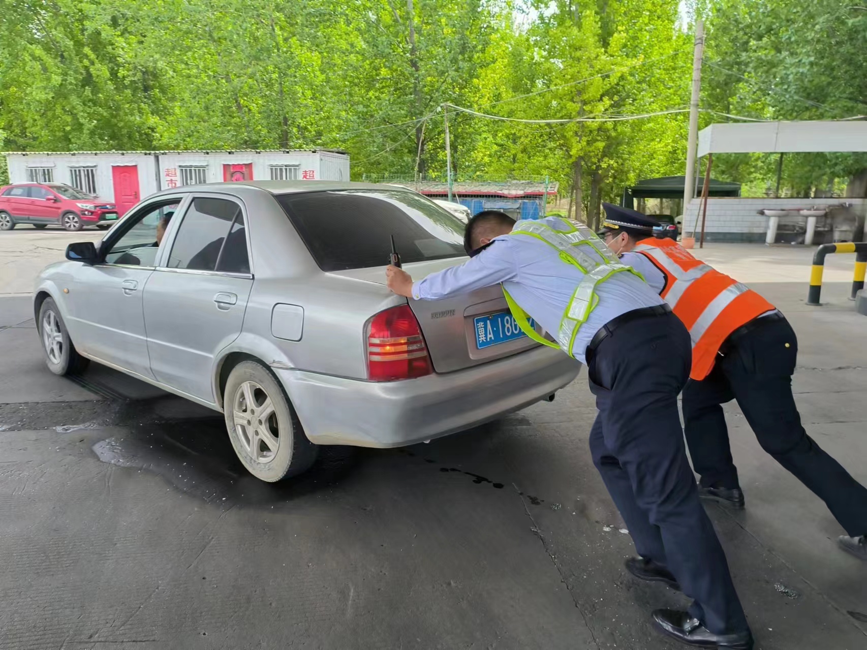5月8日上午10点15分左右,一辆小轿车突然停在栾城收费站下道广场停滞不前,正在广场巡视的值班站长和当班班长立刻上前了解情况,得知车辆因缺油无法行驶,两人合力推动车辆前行,一直将车辆推至下道口加油站,可车辆加满油后仍未正常启动,这时司机表示有可能车辆出现了故障,需要去修理厂进行维修,两人又合力将车辆推至附近修理厂,到达修理厂后大家悬着的心也落了地,司机紧紧握着二人的手连连道谢,并对栾城收费站的帮助给予了高度赞扬。