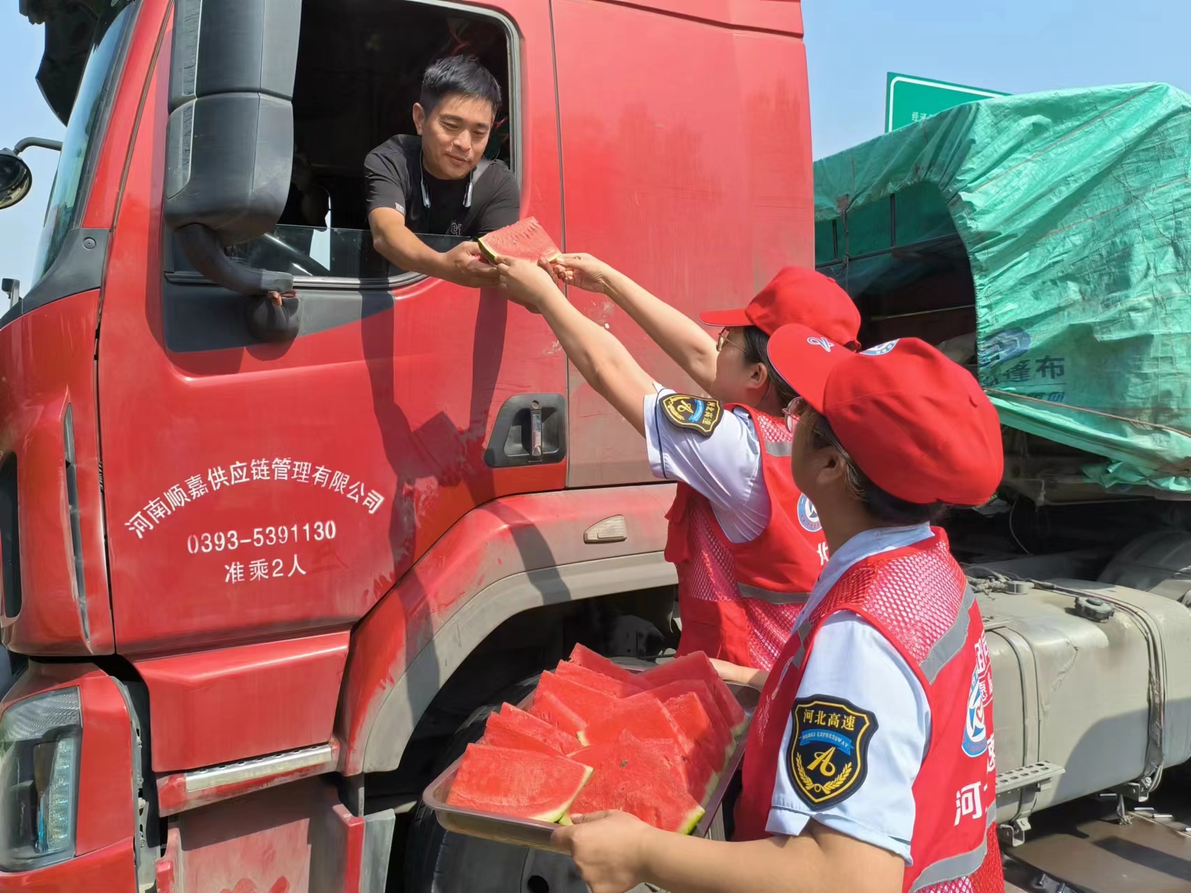 志愿者们将绿豆汤、西瓜等端到收费广场,为司乘人员送上一份夏日凉意,共同抵御夏日的酷暑和高温,同时提醒司乘人员做好防暑降温工作、注意行车安全。喝着绿豆汤的司乘脸上都露出了开心的笑容,纷纷说道:“在这个高温的天气,能喝到一杯绿豆汤,真是太舒服了,谢谢你们的贴心服务。”