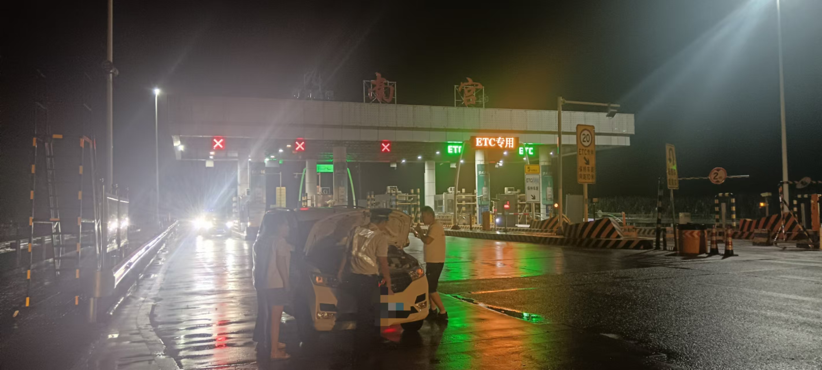 2024年8月17日22:25分,南宫收费站收费班长张亚涛在收费车道巡查,发现一辆冀A牌照的小车在正常缴费后出现故障无法正常启动,张亚涛立即上前询问情况。