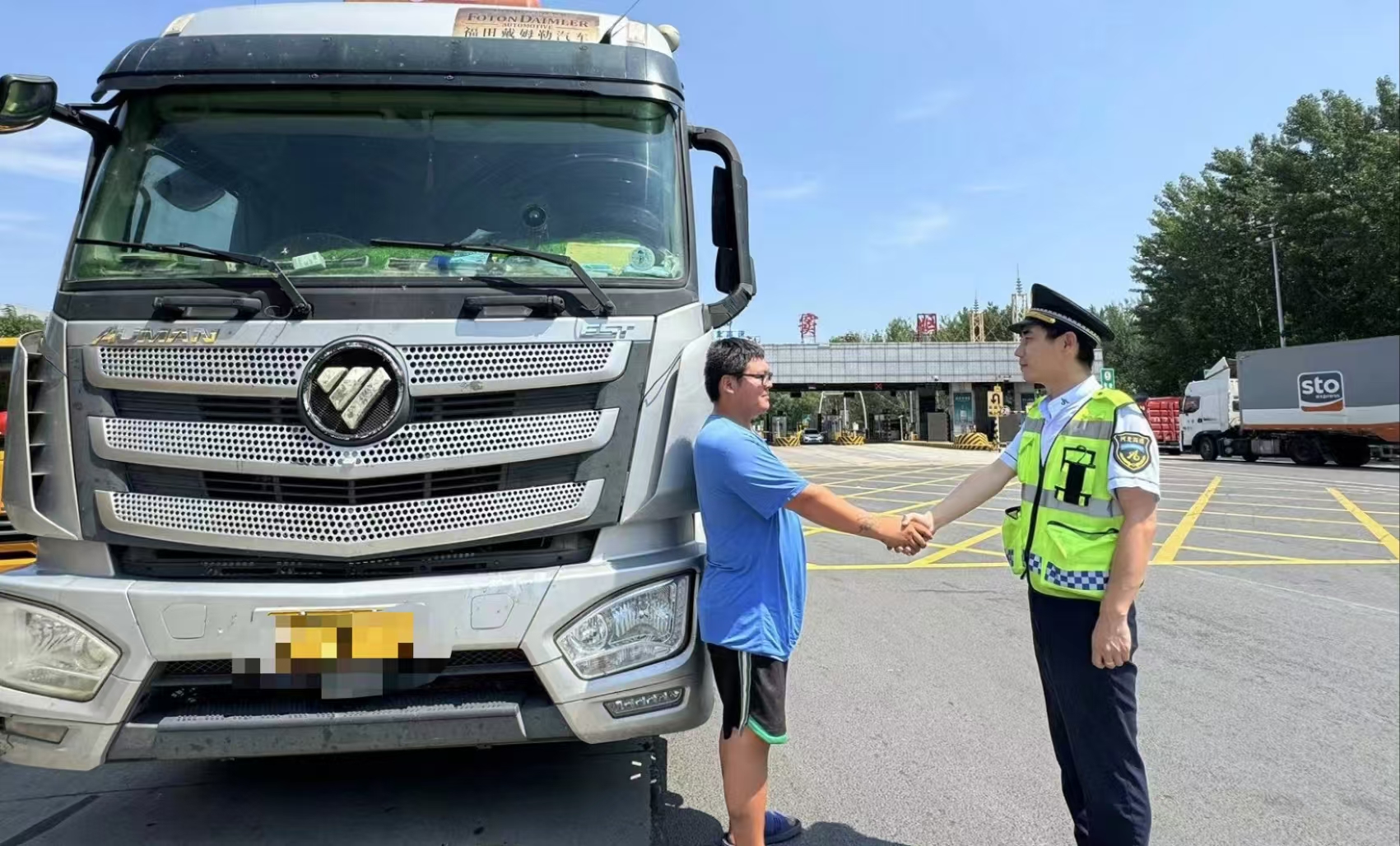 8月22日10点08分,窦妪收费站收费四班当班,一辆车牌为鲁VC0***的货车在102车道突然急促刹车,车辆瞬间抱死纹丝不动,这一幕,立刻引起了班长郭恒的注意,他立即上前了解情况,经过初步检查,发现刹车系统异常引发车辆抱死,由于抱死无法推车转移,班长迅速做出反应,安排疏导人员在车辆后方放置防光锥并引导后续车辆有序绕道通过。班长得知货车上装载的是冷冻货物,时间对于货物的保鲜至关重要,他立即帮司乘联系了附近的修理厂,请求紧急救援。经过争分夺秒的抢修,车辆终于恢复启动。临别之际,货车司机紧紧握住班长的手:“真是太感谢你们了!没有你们的及时相助,我的货物可能会遭受严重损失!”