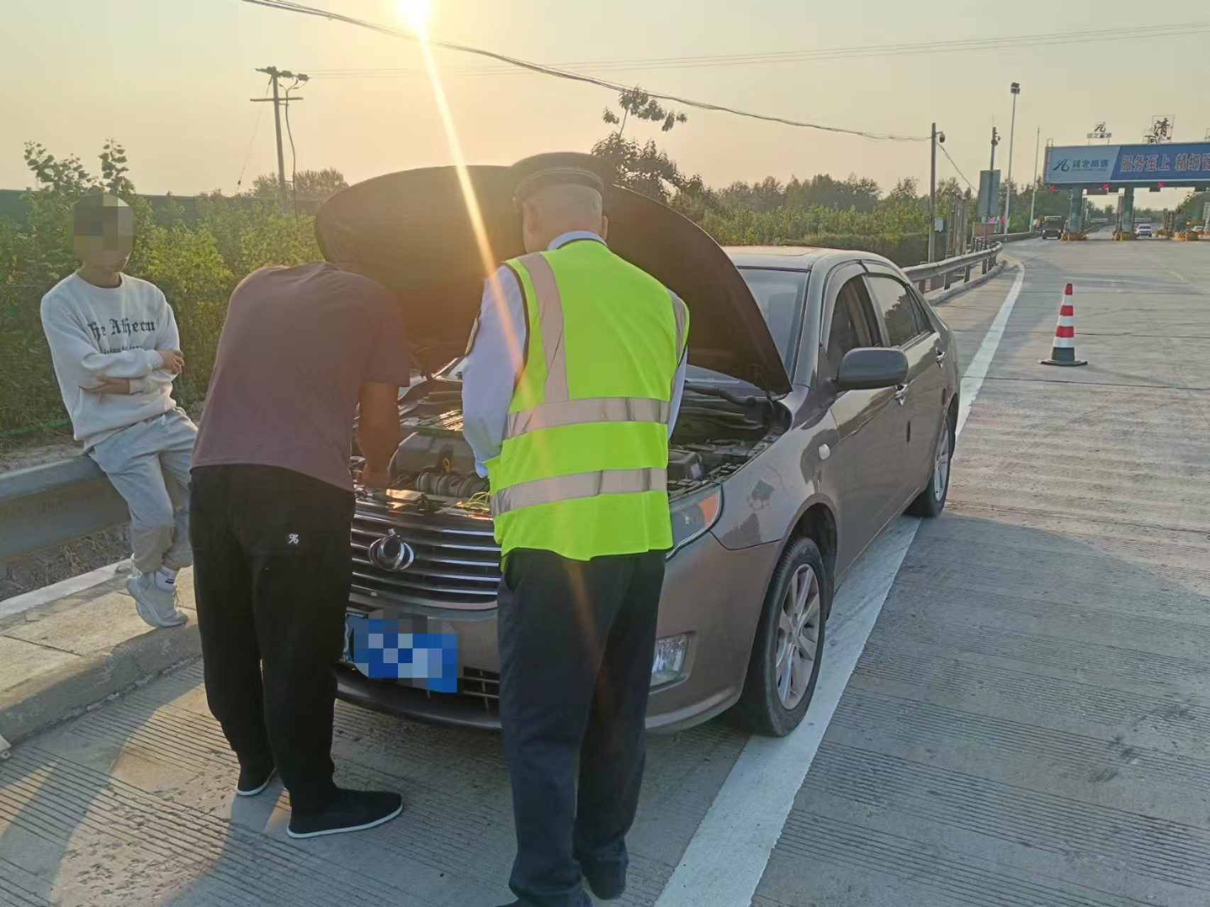 10月7日下午17时左右,国庆假期最后一天,正值返程车流高峰期。清河收费站三班班长和疏导员正在收费广场忙碌地疏导分流车辆。此时,一辆小车缓缓停在收费广场边道,司机面容焦急地从车内走出,急切地向收费站工作人员求助。经询问得知,司机师傅是自山东返程的旅客,因车辆在途中仪表提示水温过高,被迫下道联系维修。但人生地不熟的他不知道何处有修理厂,且天色渐晚,又急于返程,一时焦急万分,不知所措。