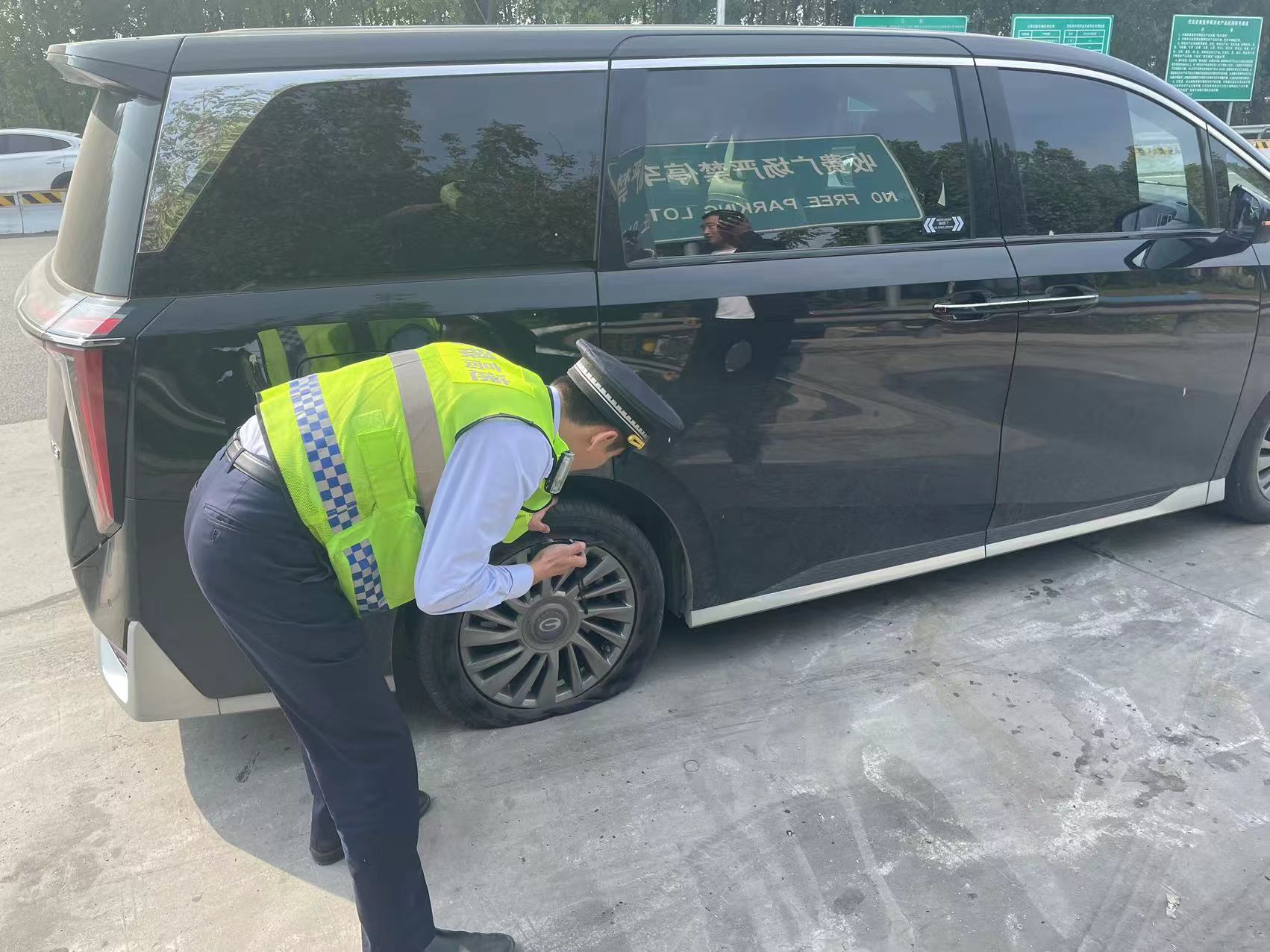 10月5日正值“十一”黄金周期间,当大家沉浸在与亲朋好友团聚、外出旅游之时,窦妪收费站四班全体人员默默地坚守岗位,为“团圆路”“出游路”保驾护航。上午10:20分左右,班长巡查时发现一辆商务车行驶状态异常,在快到收费站口时突然发生爆胎事故。班长赶忙上前查看,发现该车右后轮爆胎,而且车上还没有备胎,班长一边安慰司机,一边帮忙联系修理厂,并将车辆迅速撤离到安全区域。片刻,维修人员赶到现场将车拖走维修,司机紧握班长的双手连声道谢,感激地说:“太感谢你们了,真是帮了我大忙,给你们点赞!”班长回复道:“别客气,帮助司乘朋友解决困难是我们职责所在。”