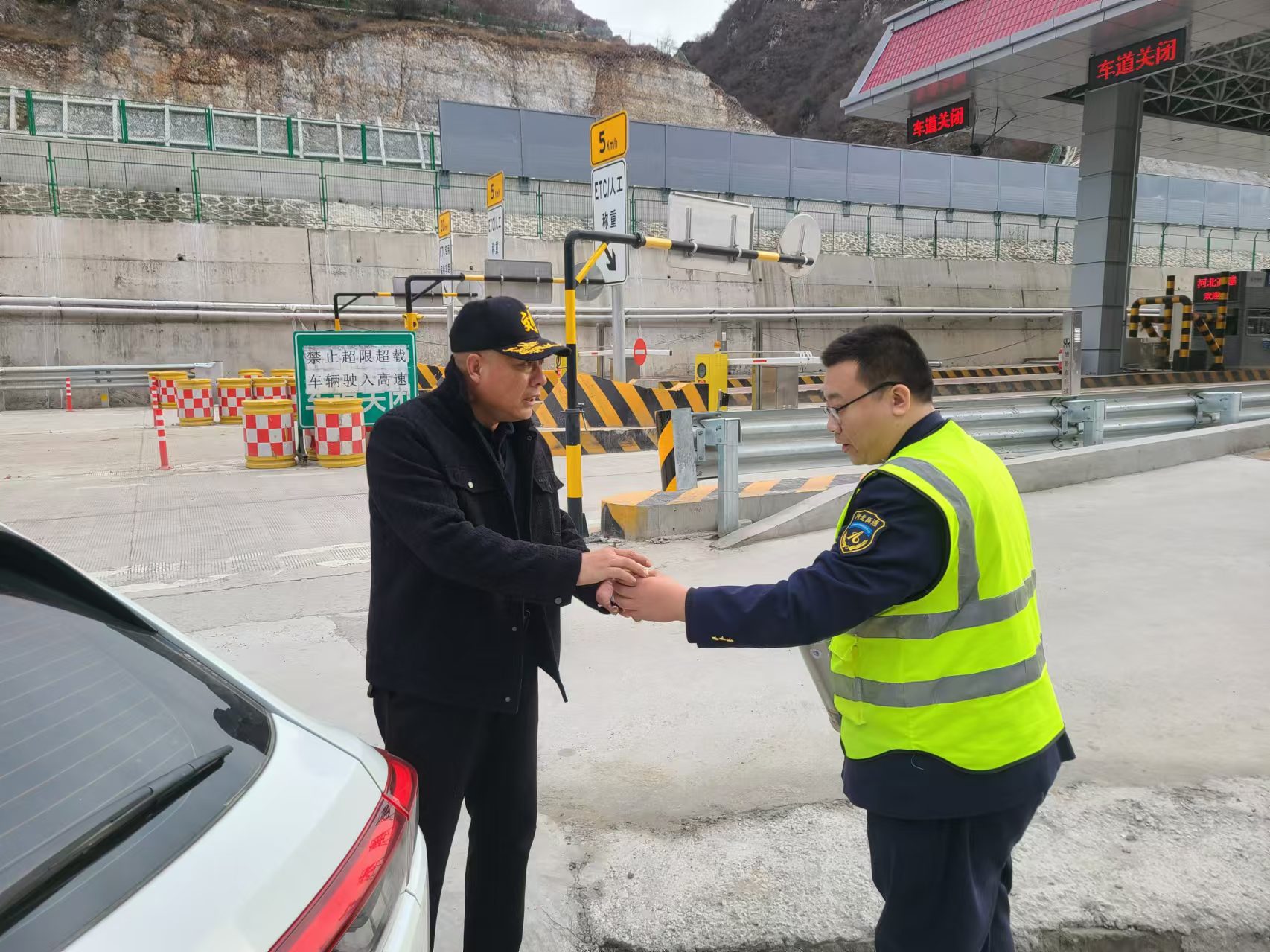 11月16日6时20分,张涿高速涞水环京收费站因雾关闭涿州方向,导致收费广场有车辆滞留。为进一步提升服务质量,保障站口安全畅通,树立优质窗口形象,该站积极采取行动,组织开展延伸服务活动。