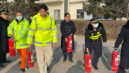 通过在院内广场安全区域点燃模拟火源,参演人员轮番上阵,按照“提、拔、握、压”的步骤正确使用灭火器,成功扑灭了模拟火源,有效提升灭火器材实操能力。