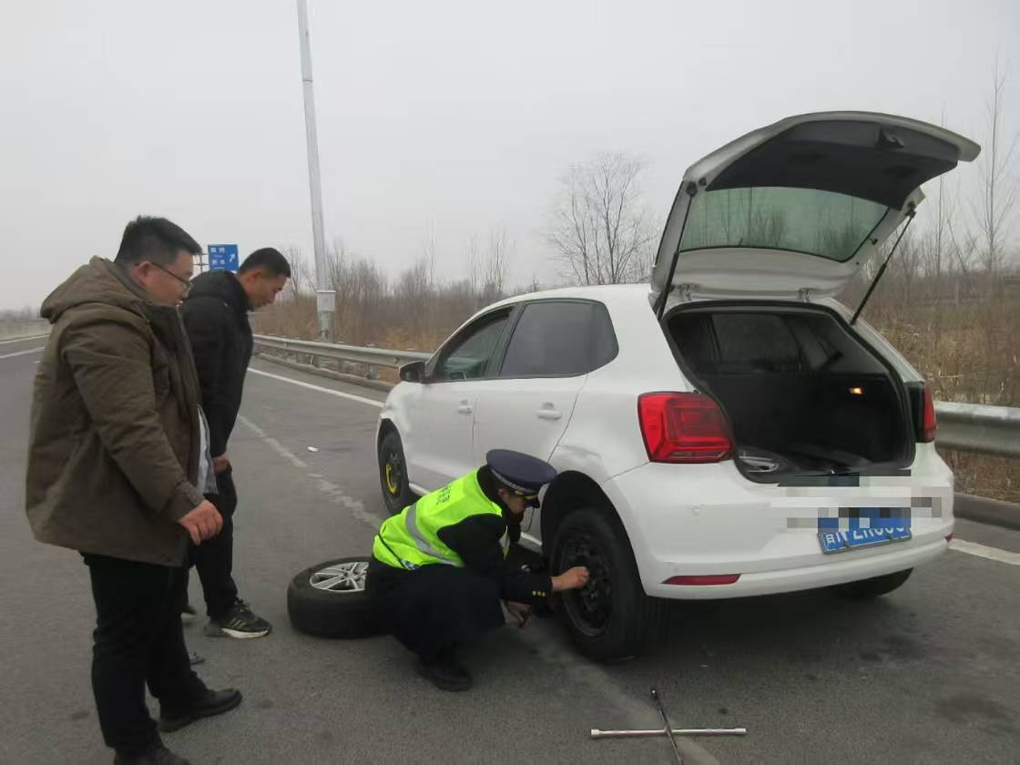 在广场值守的收费人员发现该车情况异常后,立马上前查看,通过观察发现车辆轮胎已经干瘪没气了。司机表示轮胎被扎,想换备胎但没有携带扳手,只能硬着头皮驶出高速寻找修理厂。在了解情况后,收费员告知司机收费站有维修工具,并安慰司机不要着急,收费员随后拿来维修工具,帮着司机换好备胎。临走时,司机不断表示感谢,并对冀州南收费站的服务表示极大的赞扬。