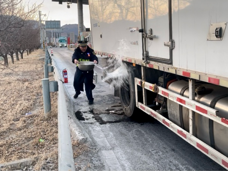 看着收费站工作人员湿透的裤脚和棉鞋,司机激动地握住值班站长的手连声道谢。在场职工纷纷表示:“这是我们应该做的”同时,不忘耐心叮嘱司机:“行车前一定要认真检查车辆状况,特别是刹车系统等关键部位,要随车配备灭火器等应急设备,以便在紧急情况下能够迅速应对。”