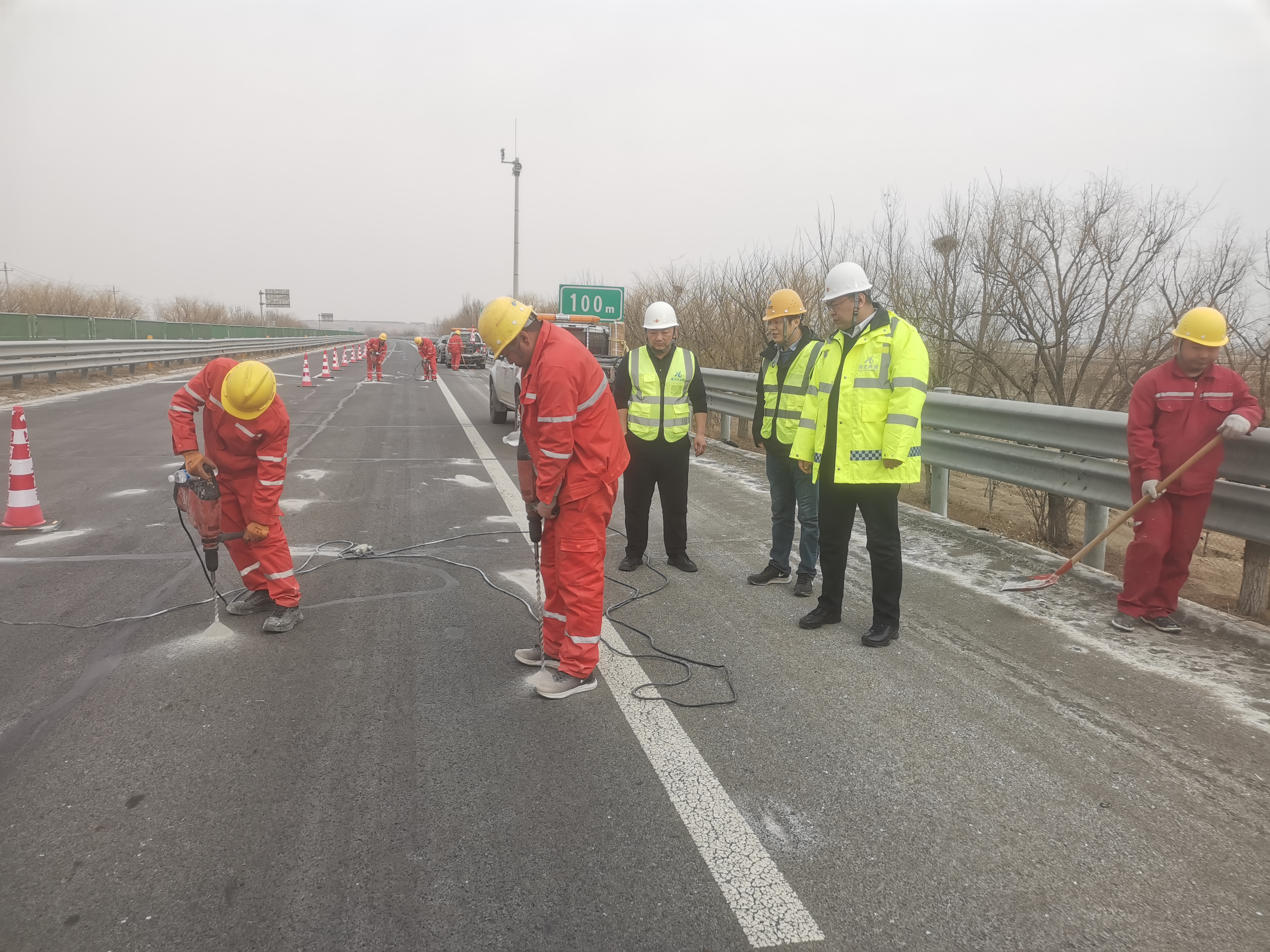 宣大高速路面病害治理工程和宣大高速洋河特大桥支座更换工程分别于3月13日和3月15日顺利开工,宣大分公司领导、分公司运营管理部、设计代表相关人员到现场进行技术指导、安全督导、组织管理等相关工作,各项工作有序推进,标志着宣大高速2025年养护工程正式拉开帷幕。