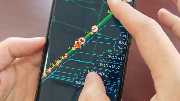 监管系统通过搭载太阳能供电系统的北斗卫星定位系统,实时采集、精准标定、远程监管高速公路养护施工控制区的位置与距离, 并持续预警施工信息。通过电脑PC端与手机APP远程监管平台,结合现有全程监控,各级管理人员可实时查看施工区域动态,实现全程数据追溯功能,成功构建起“前端感知-智能研判-即时响应”的安全防线。在石安分公司养护工程实践中,该平台展现出显著成效,石安分公司主线养护工程施工现场,标志牌、路锥整齐排列摆放精准、规范。