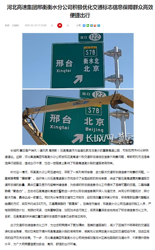 河北高速集团邢衡衡水分公司积极优化交通标志信息保障群众高效便捷出行