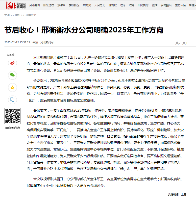 节后收心!邢衡衡水分公司明确2025年工作方向