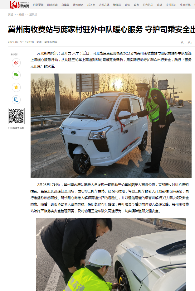 冀州南收费站与庞家村驻外中队暖心服务 守护司乘安全出行