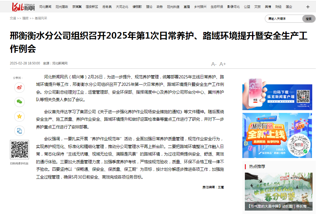 邢衡衡水分公司组织召开2025年第1次日常养护、路域环境提升暨安全生产工作例会