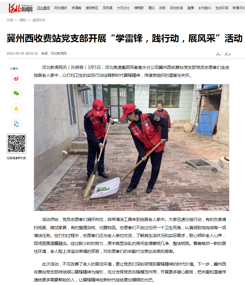 冀州西收费站党支部开展“学雷锋,践行动,展风采”活动