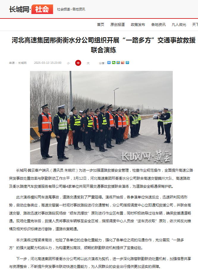 河北高速集团邢衡衡水分公司组织开展“一路多方”交通事故救援联合演练