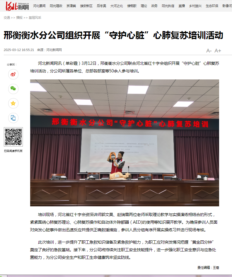 邢衡衡水分公司组织开展“守护心脏”心肺复苏培训活动