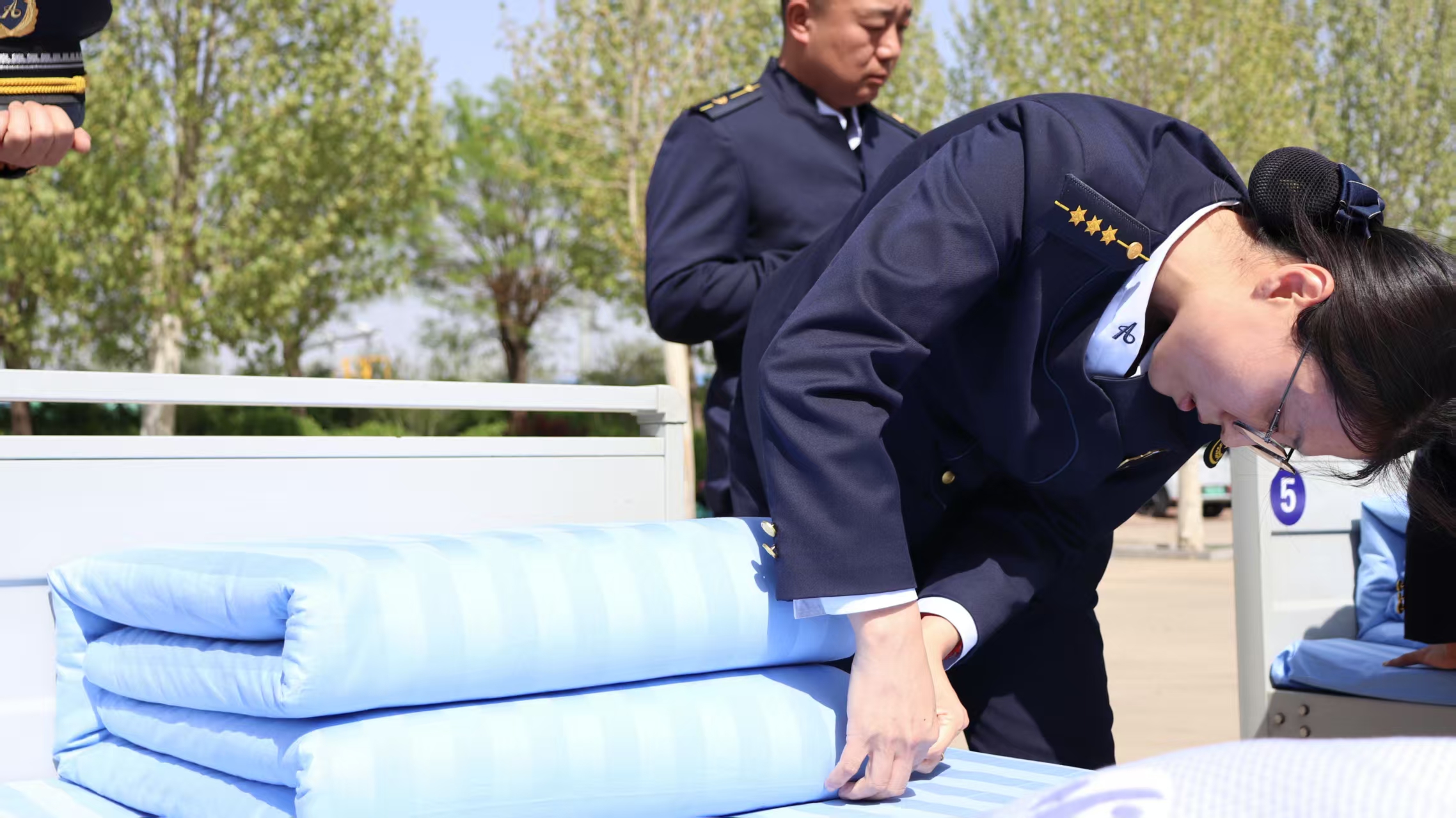 比赛现场,参赛人员精神饱满、动作迅速。随着一声“开始”,选手们迅速投入“战斗”,他们手法娴熟、动作利落,有条不紊地进行着内务整理。大家将被褥铺平、压实、折叠,反复修整边角,力求将被子叠成“豆腐块”,最后将枕头、帽子仔细地按照规定位置和标准进行摆放,整个过程展现出了收费人员扎实的基本功和严谨细致的工作态度。经过紧张角逐,最终玉田城西收费站刘立坤、平安城收费站孙志芳、东新庄收费站贾志伟分别荣获一、二、三等奖。