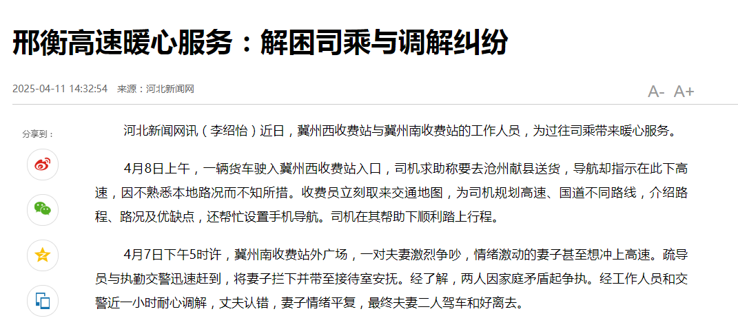 邢衡高速暖心服务:解困司乘与调解纠纷