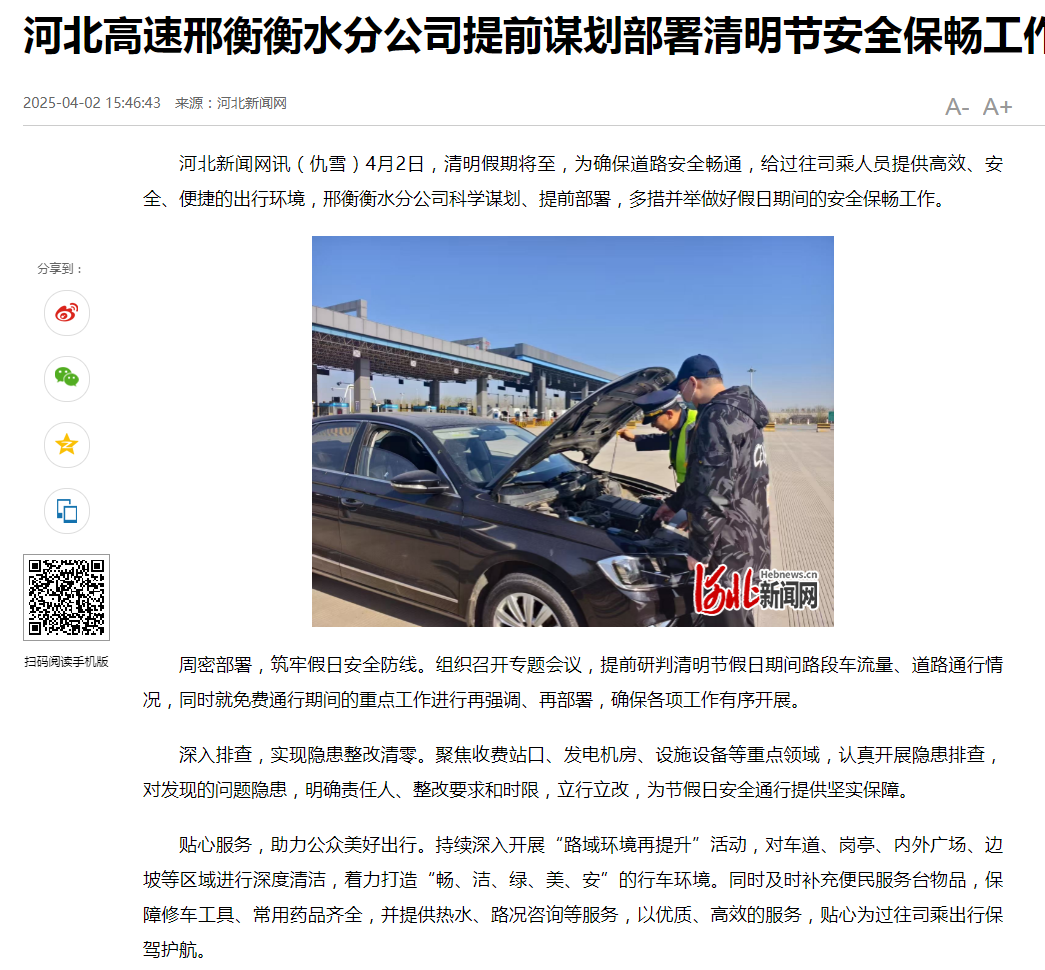 河北高速邢衡衡水分公司提前谋划部署清明节安全保畅工作