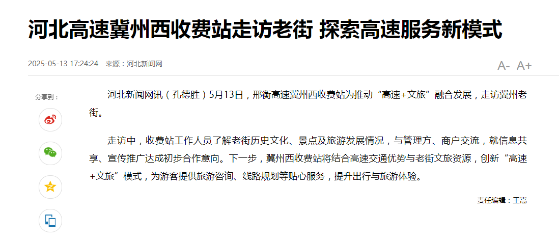 河北高速冀州西收费站走访老街 探索高速服务新模式
