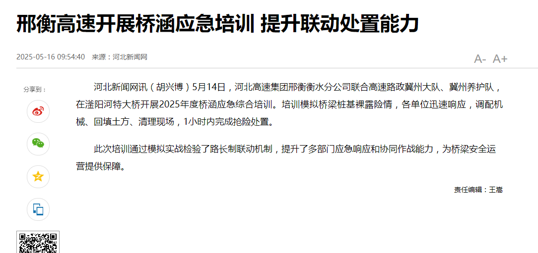 邢衡高速开展桥涵应急培训 提升联动处置能力