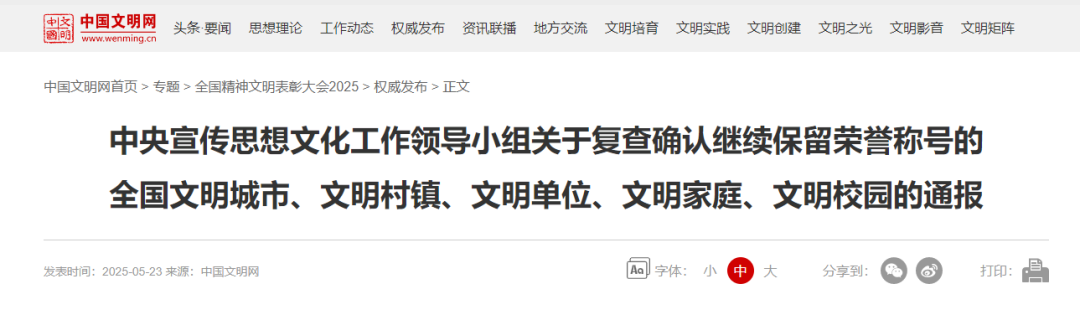 2025年5月23日,中央宣传思想文化工作领导小组发布《关于复查确认继续保留荣誉称号的全国文明城市、文明村镇、文明单位、文明家庭、文明校园的通报》,江南登录网站顺利通过复查,连续14年保持“全国文明单位”荣誉称号;青银分公司2021年获评“全国文明单位”,亦顺利通过本次复查。