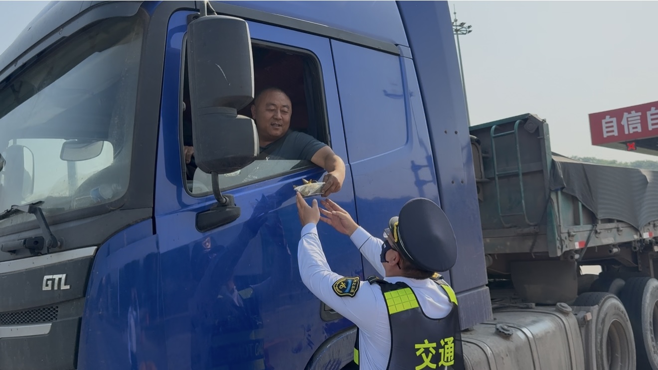 “端午安康,路上辛苦了!”志愿者们将煮好的粽子分装打包,在广场亲手为过往司乘递上热乎的粽子,微笑着送上节日祝福,让传统文化与志愿服务同频共振。这份带着粽叶清香的关怀,不仅驱散了旅途的疲惫,更让端午的节日氛围在高速公路上悄然蔓延,让每一位奔波的司乘都感受到家的温馨。