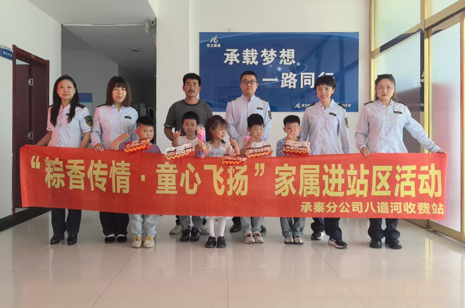 在端午佳节与“六一”儿童节双节来临之际,为增进职工家属对收费工作的理解与支持,营造温馨和谐的站区文化,八道河收费站于5月30日组织开展了“粽香传情·童心飞扬”家属进站区活动,邀请职工子女走进站区,近距离感受父母的工作环境,共度充满童趣与温情的节日时光。