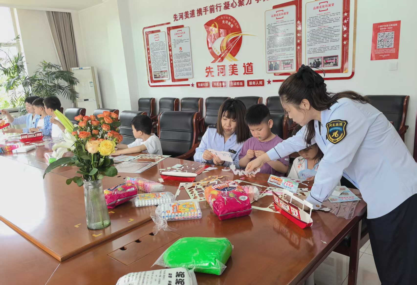 参观结束后,站区为孩子们准备了丰富多彩的手工活动。小朋友们用彩纸拼贴出栩栩如生的“手工龙舟”,用画笔涂鸦出心中的端午景象,还捏出五彩斑斓的黏土粽子。活动现场欢声笑语不断,孩子们充分发挥想象力,将节日祝福融入作品。职工们看着儿子的作品笑道:“平时工作忙,难得陪孩子做手工,今天一起完成龙舟特别有意义!”