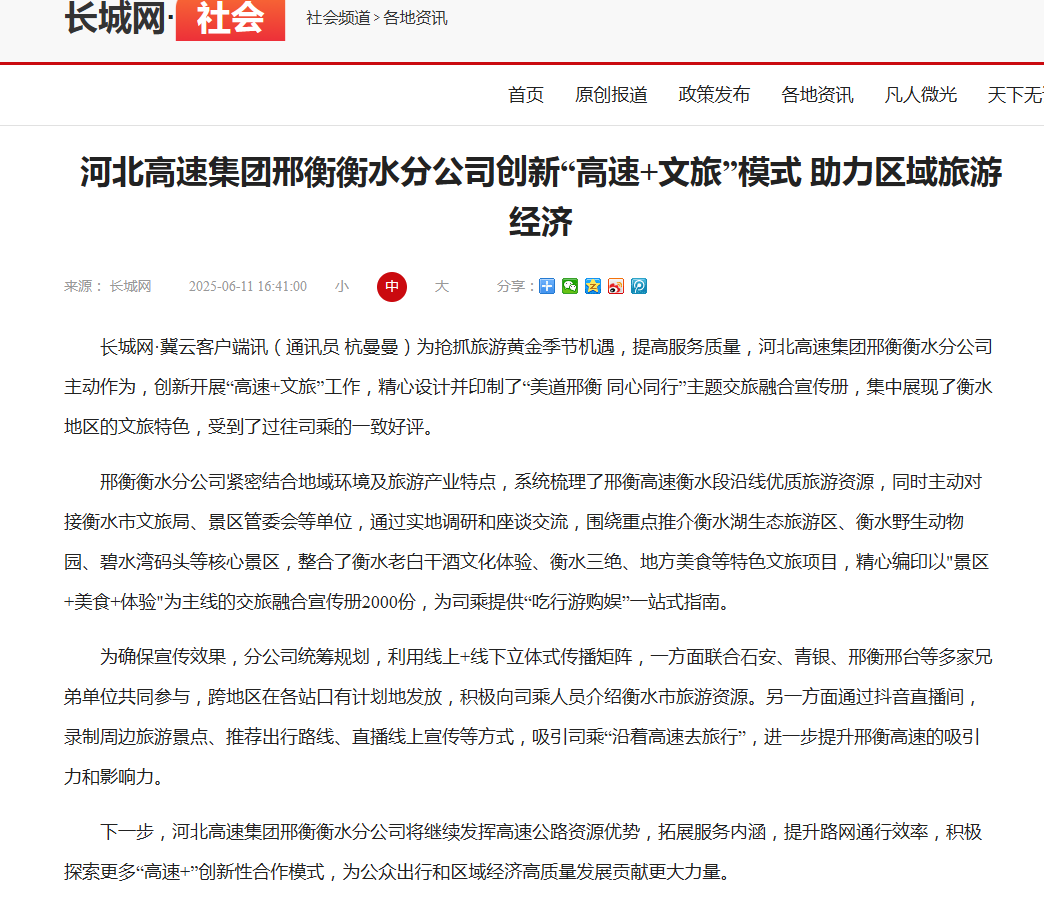 河北高速集团邢衡衡水分公司创新“高速+文旅”模式 助力区域旅游经济