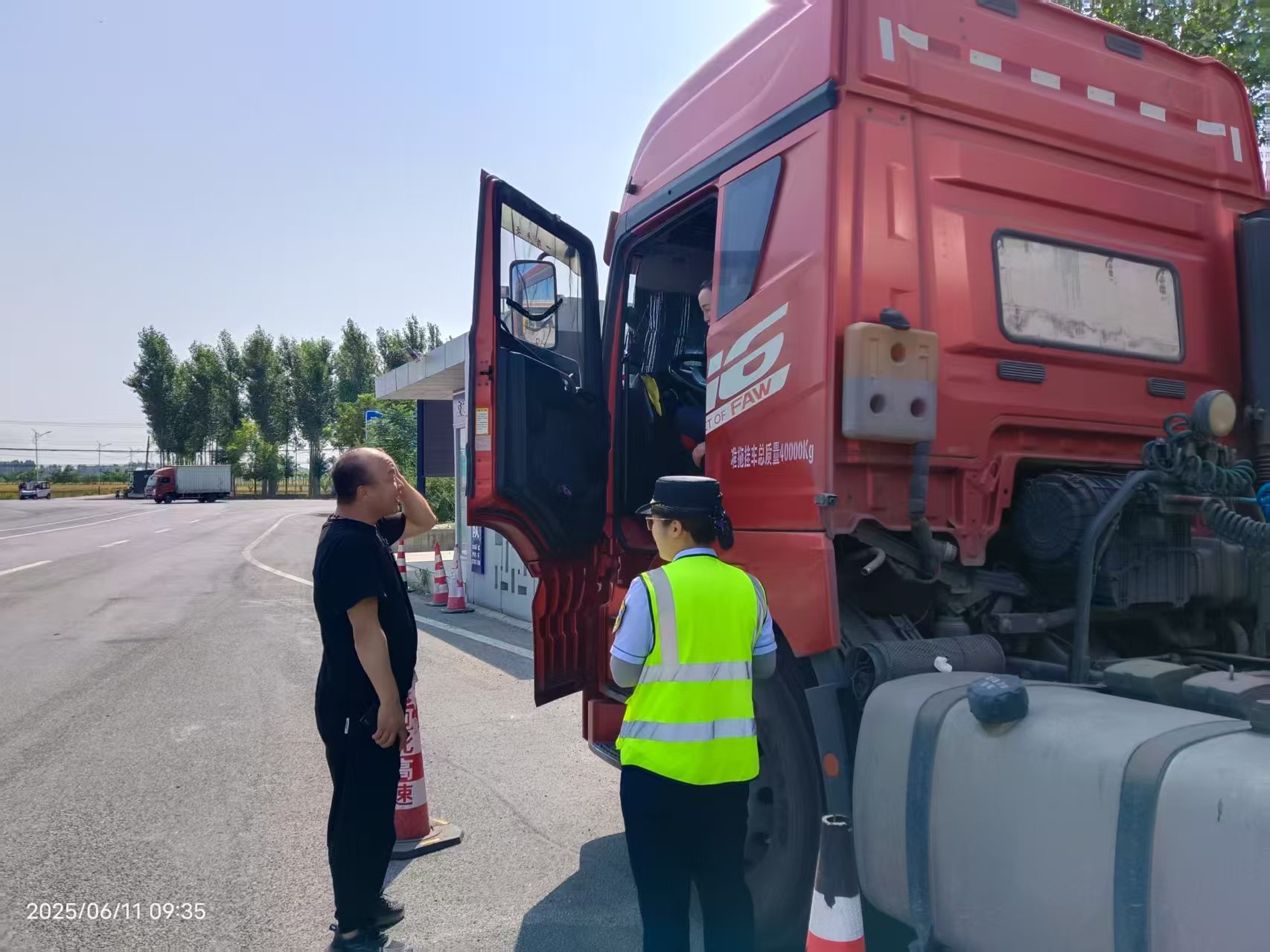 6月10日傍晚,一辆半挂危险品车辆从涞水北收费站驶出,停在了外广场候车区。因停的时间较久,当班疏导员几次过去想询问情况,可都是车门紧锁,车内无人。直到晚上10时许,一位司机非常憔悴地找到收费人员寻求帮助。