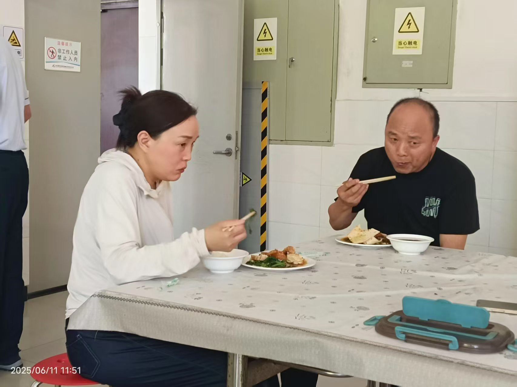 第二天一早,当班班长过去关心了一下司机的身体,司机说好多了,再观察一天,没什么事的话下午就出发了。因为天气炎热,考虑到车里闷热,当班班长将他们请到了休息室休息,期间带他们打热水、上厕所、饭点带他们去食堂吃饭、帮助司机规划路线等等。这一连串无微不至的照顾,让这夫妻二人很是感动,连连道谢,说道:“真是不知道怎么感谢你们好了,在这人生地不熟的地方,幸亏有你们的帮忙。”