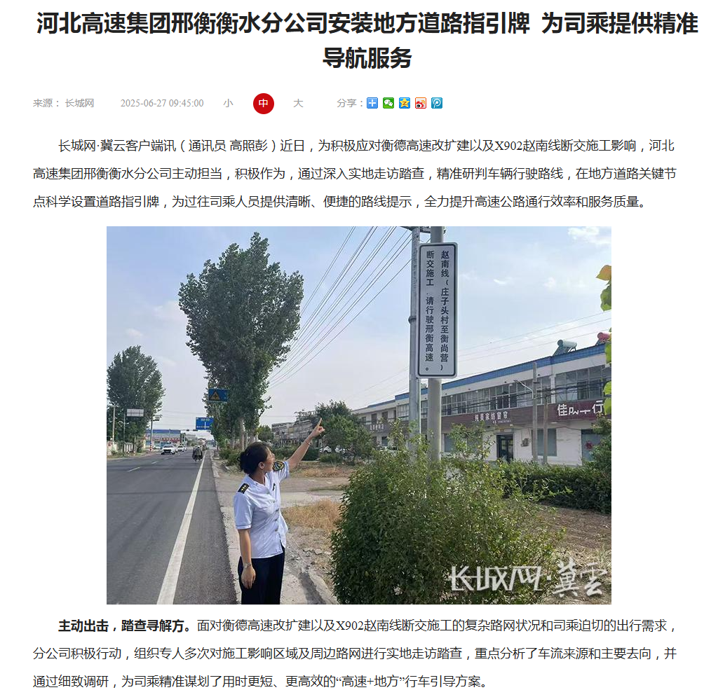 河北高速集团邢衡衡水分公司安装地方道路指引牌 为司乘提供精准导航服务