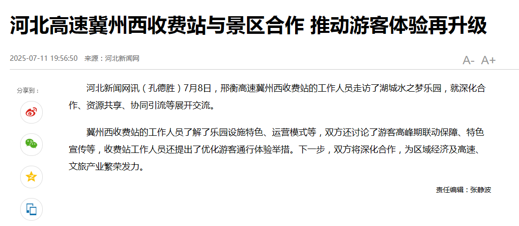 河北高速冀州西收费站与景区合作 推动游客体验再升级