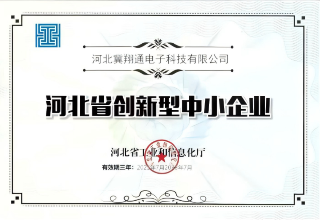 7月29日,冀翔通公司喜获由河北省工业和信息化厅颁发的“河北省创新型中小企业”证书。