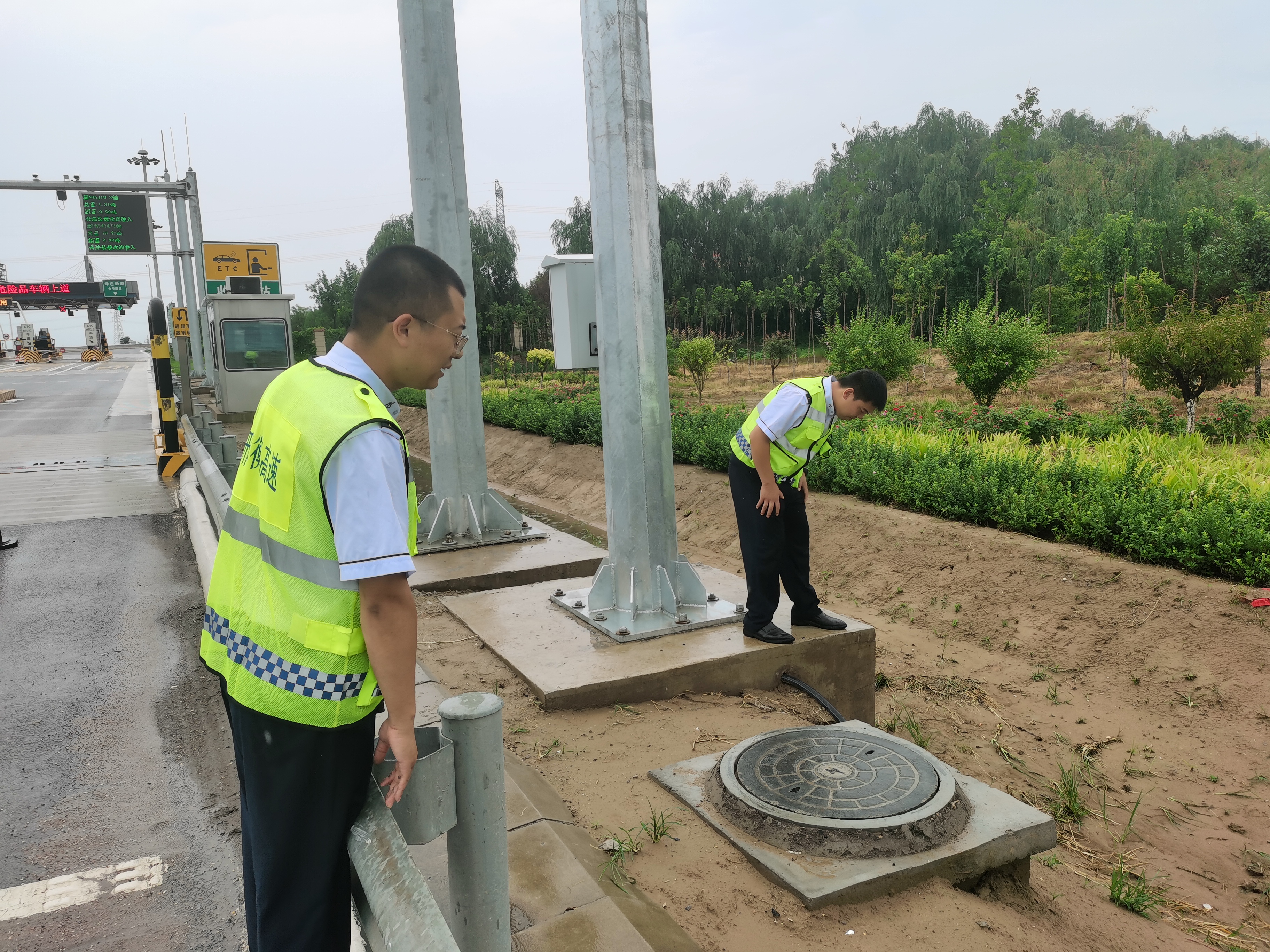 精密部署,下好防汛“先手棋”。收费站立即召开防汛紧急会议,细化责任分工。防汛沙袋、应急发电机、照明设备、警示标志等物资迅速补充到位,并在关键点位预置。办事员对收费大棚、机电设备、供配电系统、通讯线路进行全方位“再体检”,重点加固易渗水部位,疏通清理所有排水沟、泄水孔,确保排水系统百分百畅通。