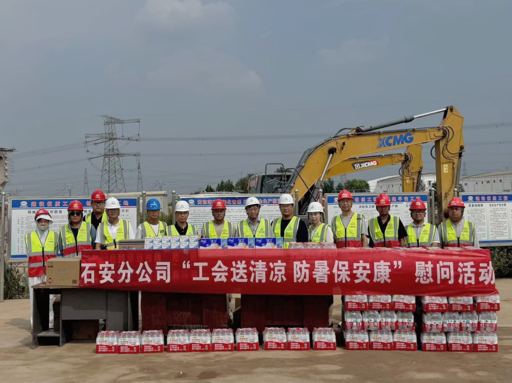 当前京港澳高速永年北互通和邯郸东南环支线肥乡西互通项目进入攻坚冲刺阶段。为切实保障一线施工人员安全健康权益,凝聚工程建设合力,8月14日,石安分公司组织“送清凉”慰问组,深入两个重点工程项目施工现场,为顶烈日、战高温的300余名建设者送去防暑降温物资和组织关怀,分公司副总经理李志强参加。