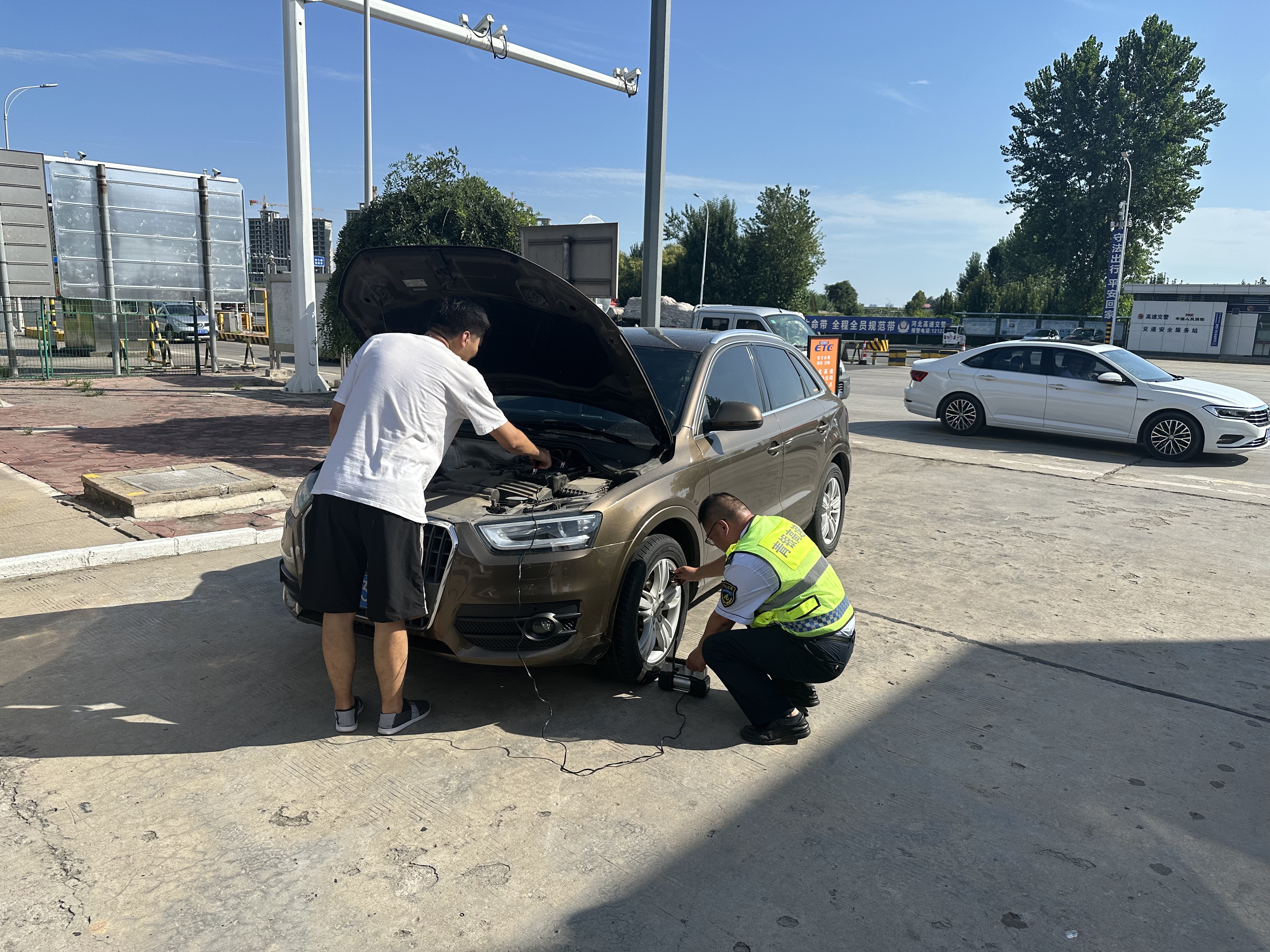 8月25日下午15时,宁晋收费站疏导员在收费广场指挥交通时,发现一辆小轿车左前轮胎明显亏气,存在安全隐患,便立即告知司机。