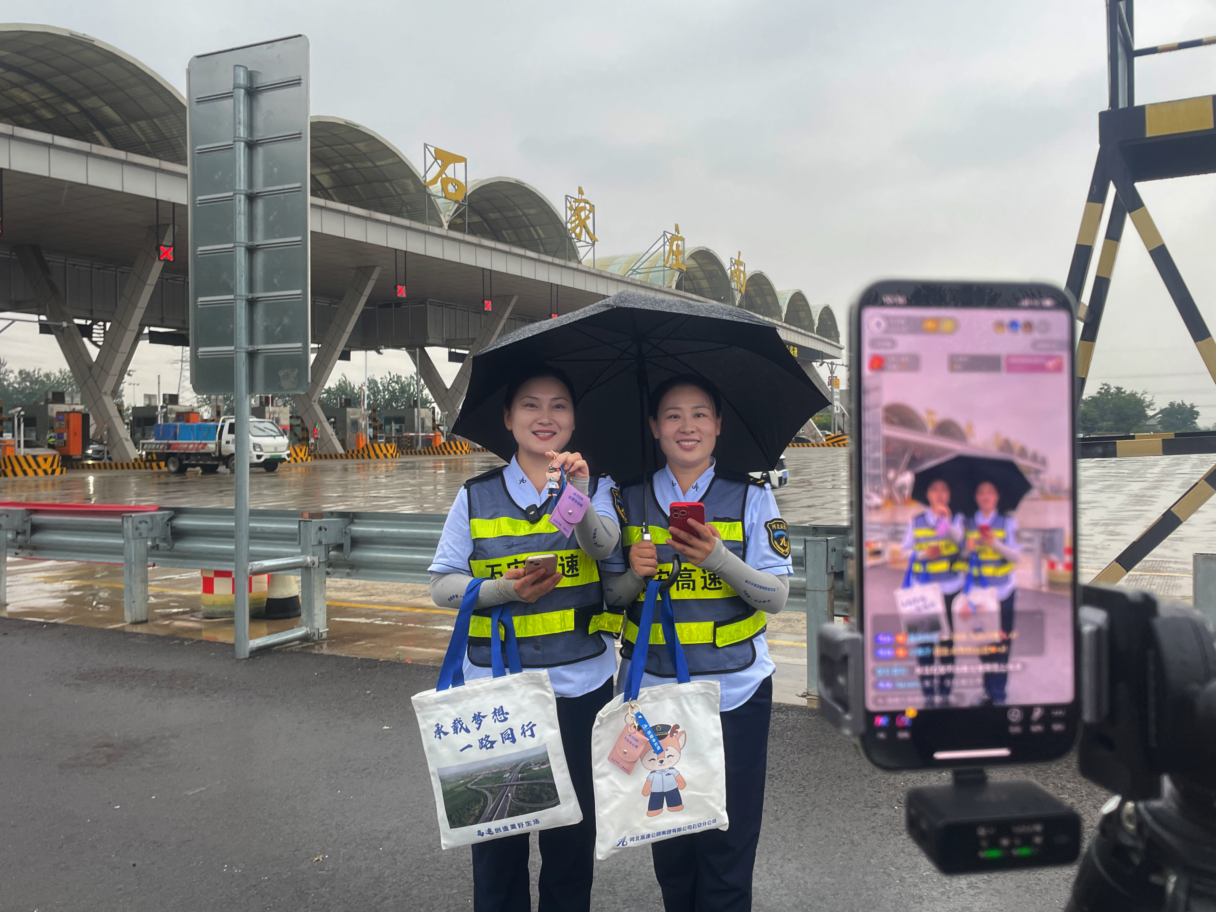 活动中,分公司直播团队冒雨在石家庄南收费站开启户外直播。镜头前,主播们实时播报路况信息,温馨提示雨天行车注意事项;镜头外,团队人员向到场司乘免费发放印有"承载梦想 一路同行"字样及“石安鹿”卡通形象的帆布袋、公仔钥匙链套装,成为雨中一道温暖的风景线。“雨这么大,不仅能听到路况提醒,还能收到这么实用的礼物!”经常通行石安高速的王师傅对刚领取的“石安鹿”主题礼品赞不绝口,“钥匙链既可爱又配有指甲刀,特别贴心。”活动现场,许多司乘人员踊跃参与,纷纷为这一创新服务形式点赞。