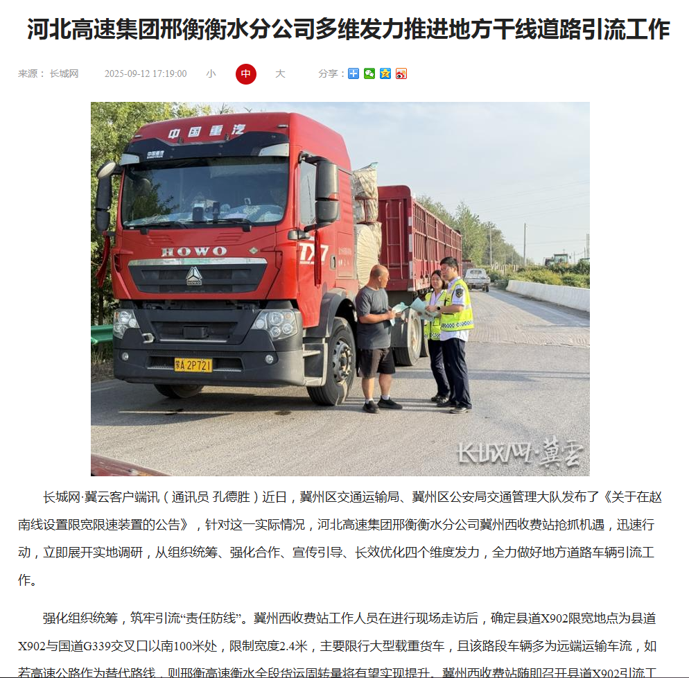 河北高速集团邢衡衡水分公司多维发力推进地方干线道路引流工作