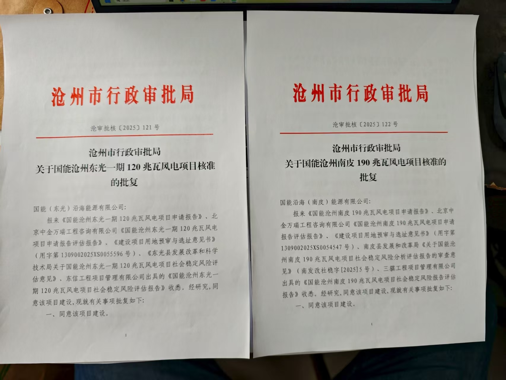 9月16日,河北沿海公司国能沧州东光一期120兆瓦风电项目与国能沧州南皮190兆瓦风电项目同时取得沧州市行政审批局核准批复,标志着两个项目前期工作取得突破性进展。