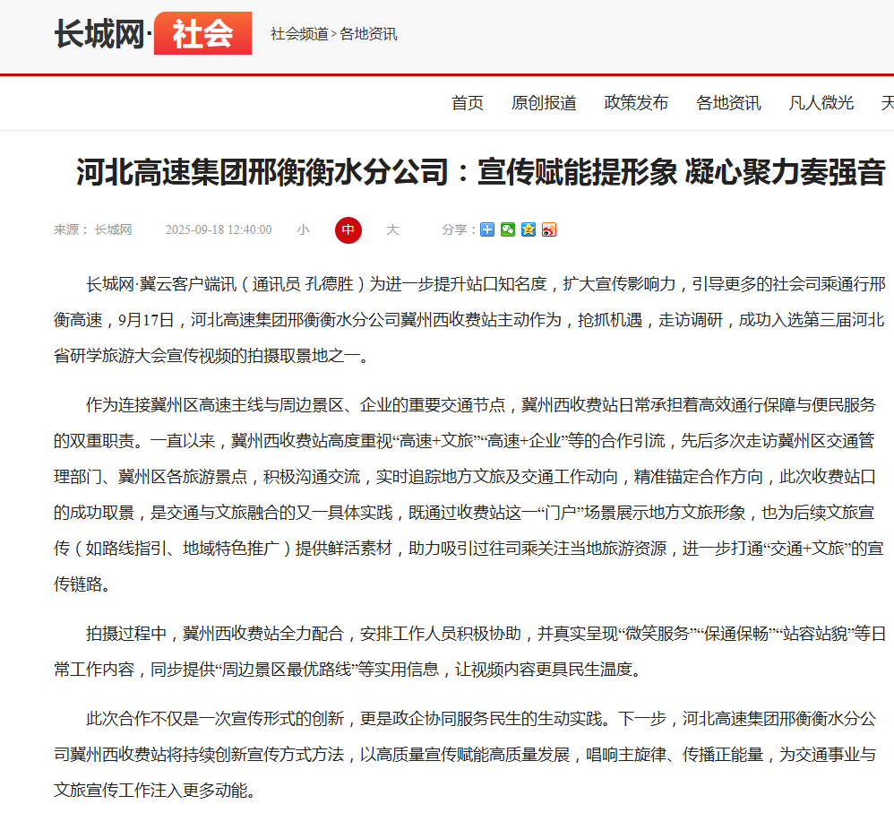 河北高速集团邢衡衡水分公司:宣传赋能提形象 凝心聚力奏强音