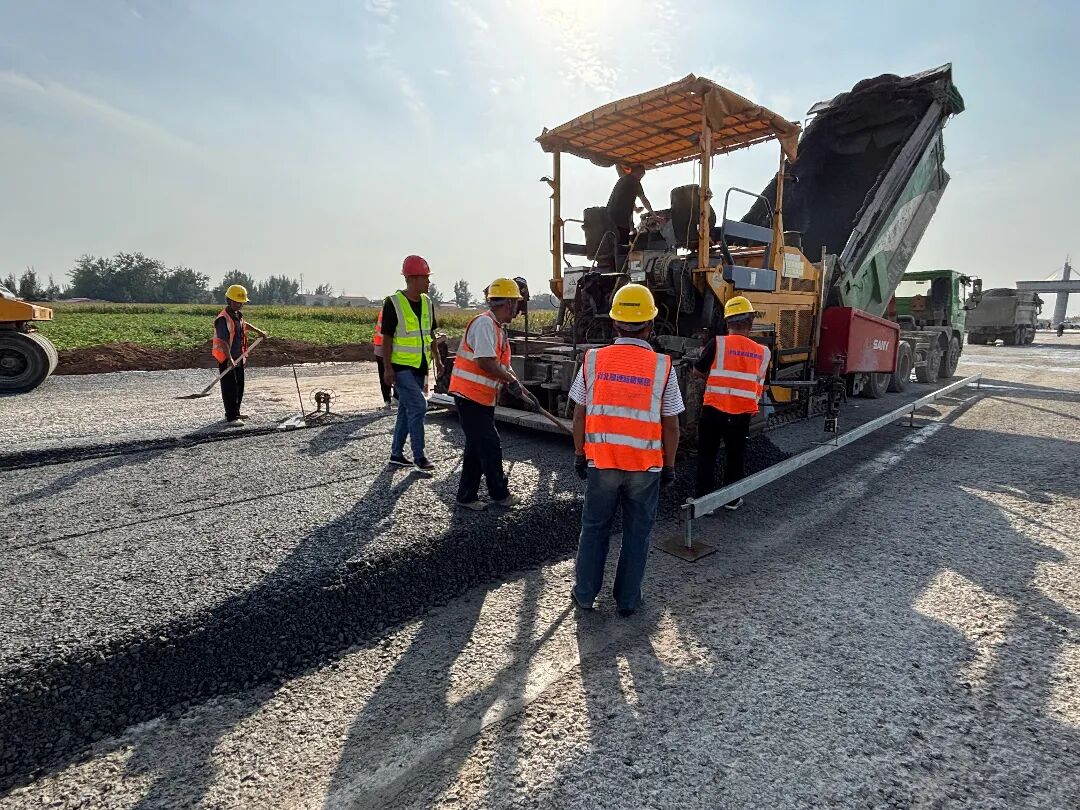 滏阳互通项目部抢抓施工黄金期,全员坚守岗位推进水稳摊铺作业。施工现场运输车辆往来有序,作业人员紧密配合,摊铺、碾压、检测等环节严格按计划推进。水稳摊铺作为关键工序,其施工质量直接关系到道路使用寿命与安全,为后续工程奠定了坚实基础。
