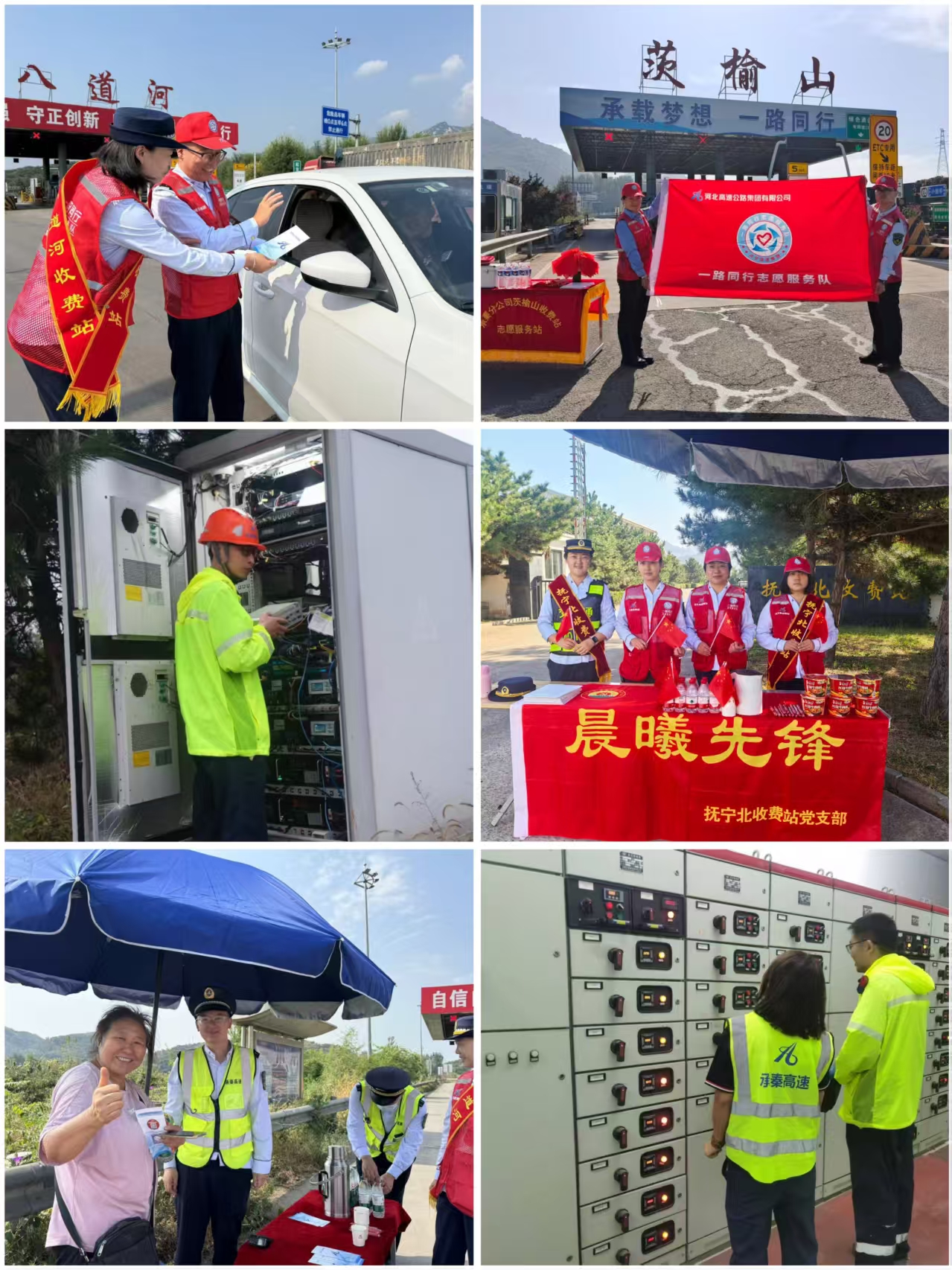 节日期间,分公司严格执行领导带班制度,安排专人开展道路巡查工作,开展车辆救援8起,清理路面障碍物2次。全线各服务节点同步发力:车流高峰时段,工作人员主动走出岗亭,手提矿泉水、方便面等物资送至滞留司乘手中,遇货车刹车系统过热等突发故障时,第一时间开展应急处置;针对导航失误、限行政策疑问等情况,安排专人提供路线规划与政策解读服务,缓解司乘焦躁情绪;同步开展“十一同庆”志愿服务,设立便民服务点与党员先锋岗,提供免费开水、应急药品、安全驾驶宣传册,讲解电子发票开具流程,协助检查车辆安全状况。此外,隧道管理团队全体人员24小时在岗,监控员实时监测隧道动态,机电员定时巡检排除隐患,拍摄国庆专题视频,记录坚守身影献礼祖国华诞。