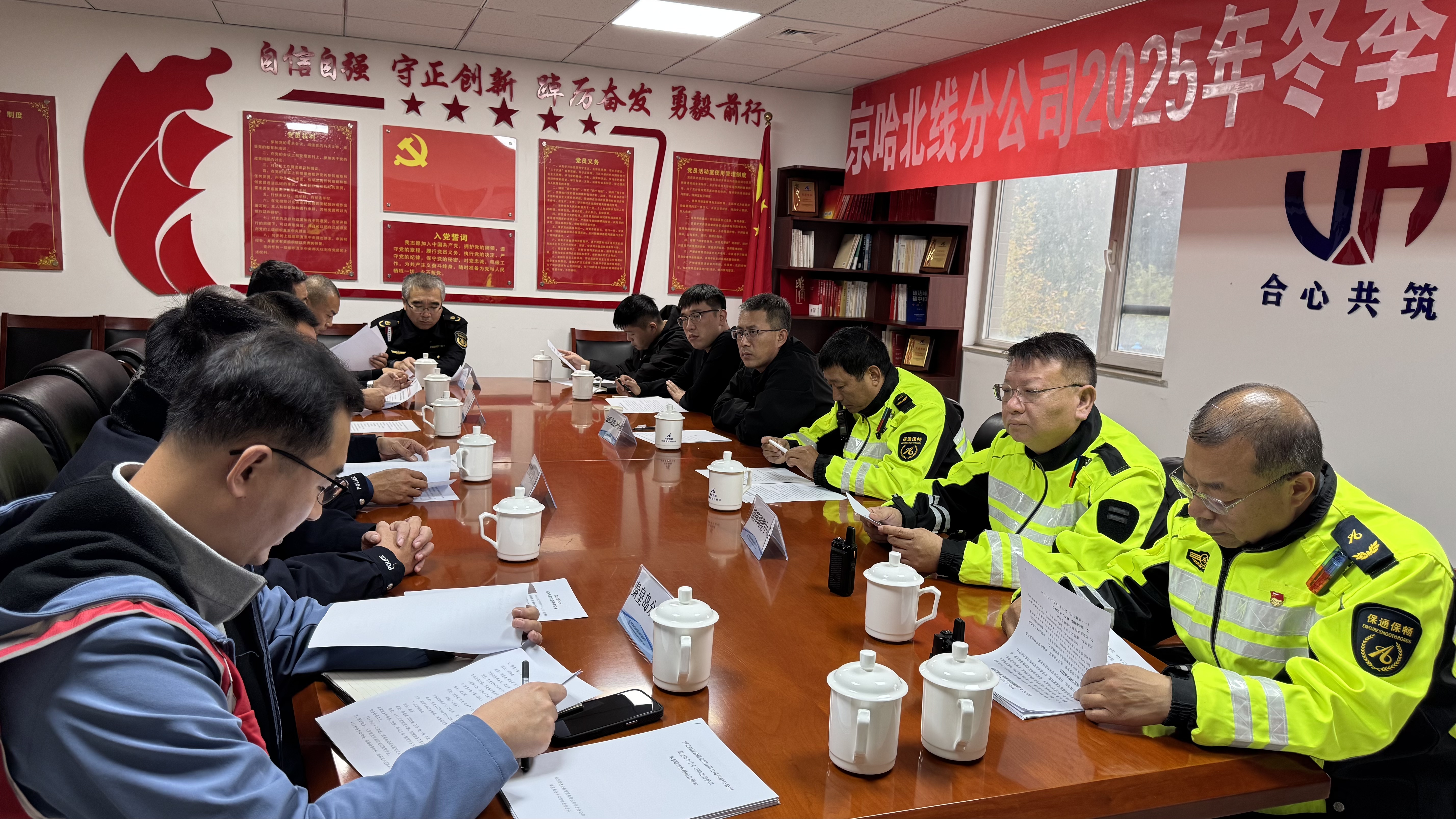 15时,全体参演人员召开除雪应急演练部署会议,分公司总指挥明确了本次演练的核心目标与全流程安排,协调调度组进一步细化各参演单位的职责分工;巡查检查组重点强调了雪情监测的精准性与信息传递的时效性要求;后勤保障组提前完成应急物资清点与作业设备调试,确保物资设备“备得足、调得出、用得上”。