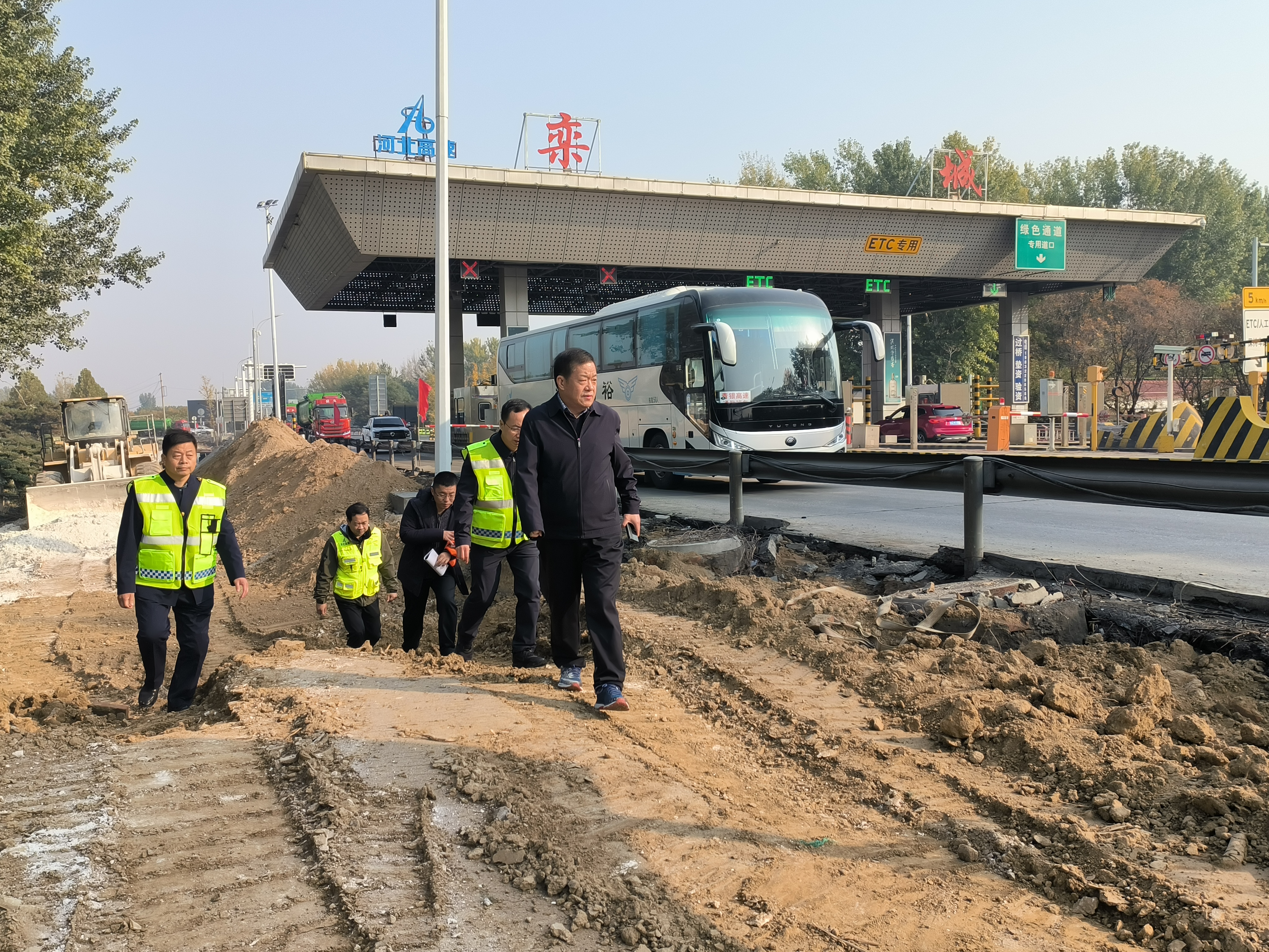 11月4日,青银分公司党委书记张建军带队深入栾城收费站,实地督导入口车道扩容升级工程施工进展和施工安全等工作,办公室、机电管理中心负责同志陪同督导检查。