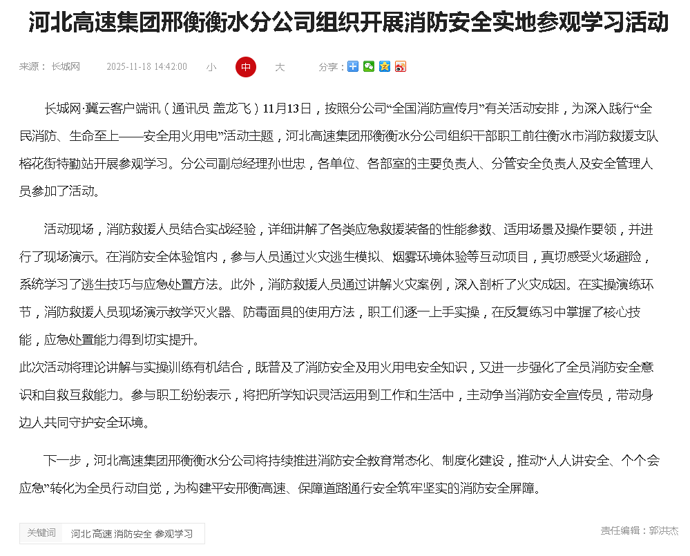 河北高速集团邢衡衡水分公司组织开展消防安全实地参观学习活动